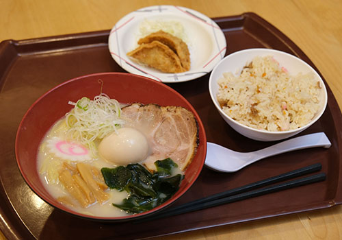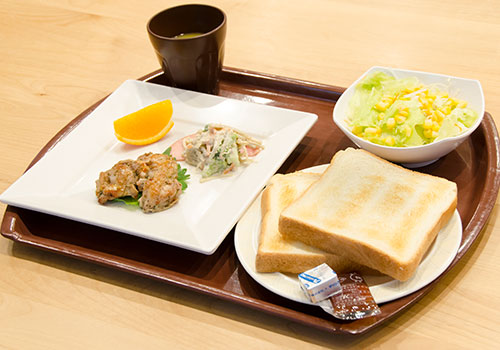 A.食事は、朝食7時~9時、夕食18時~21時の間に食堂で摂ると決まっています。(月~土曜日。日曜祝日は休業。)また、館生には高い摂食率が求められています。和食・洋食・中華・エスニックとメニューもバラエティが豊富でボリューム感もあります。